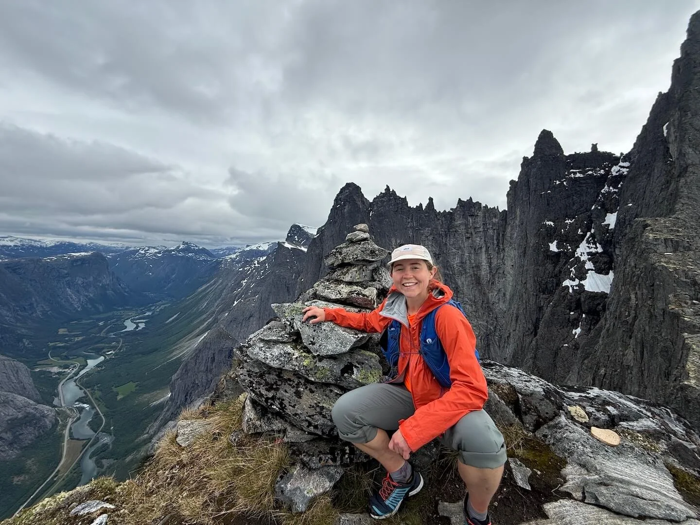 The scramble up to the summit had a series of simple, barely exposed moves. Despite appearances the only true exposure was at the summit where the sheer drop becomes apparent. This hike is as cool as it looks, a must-do if you are visiting Åndalsnes.